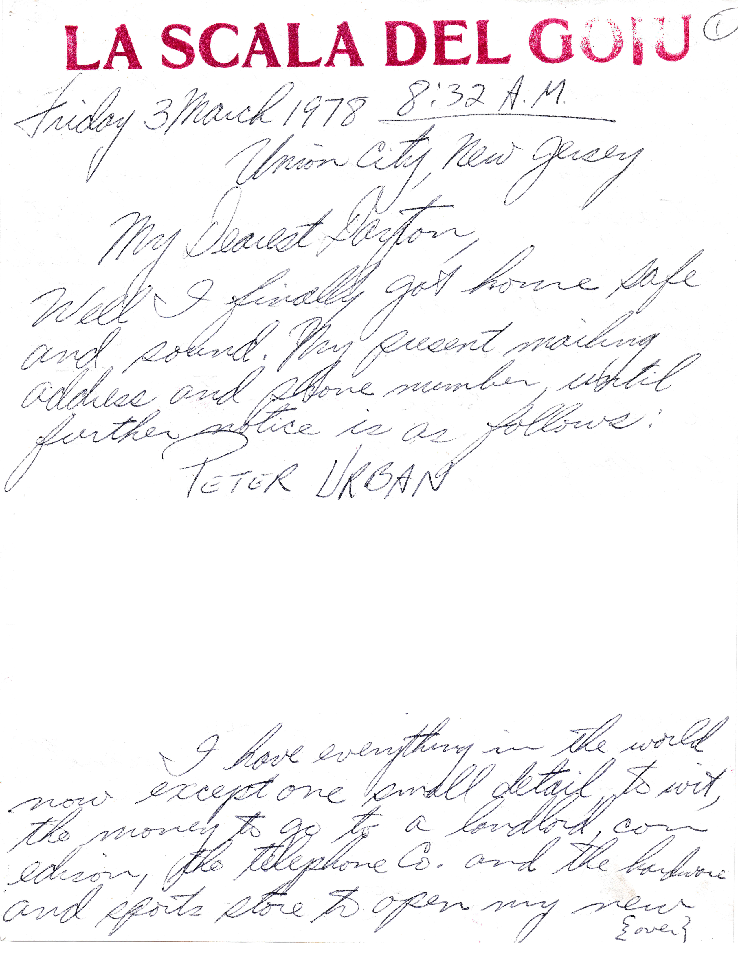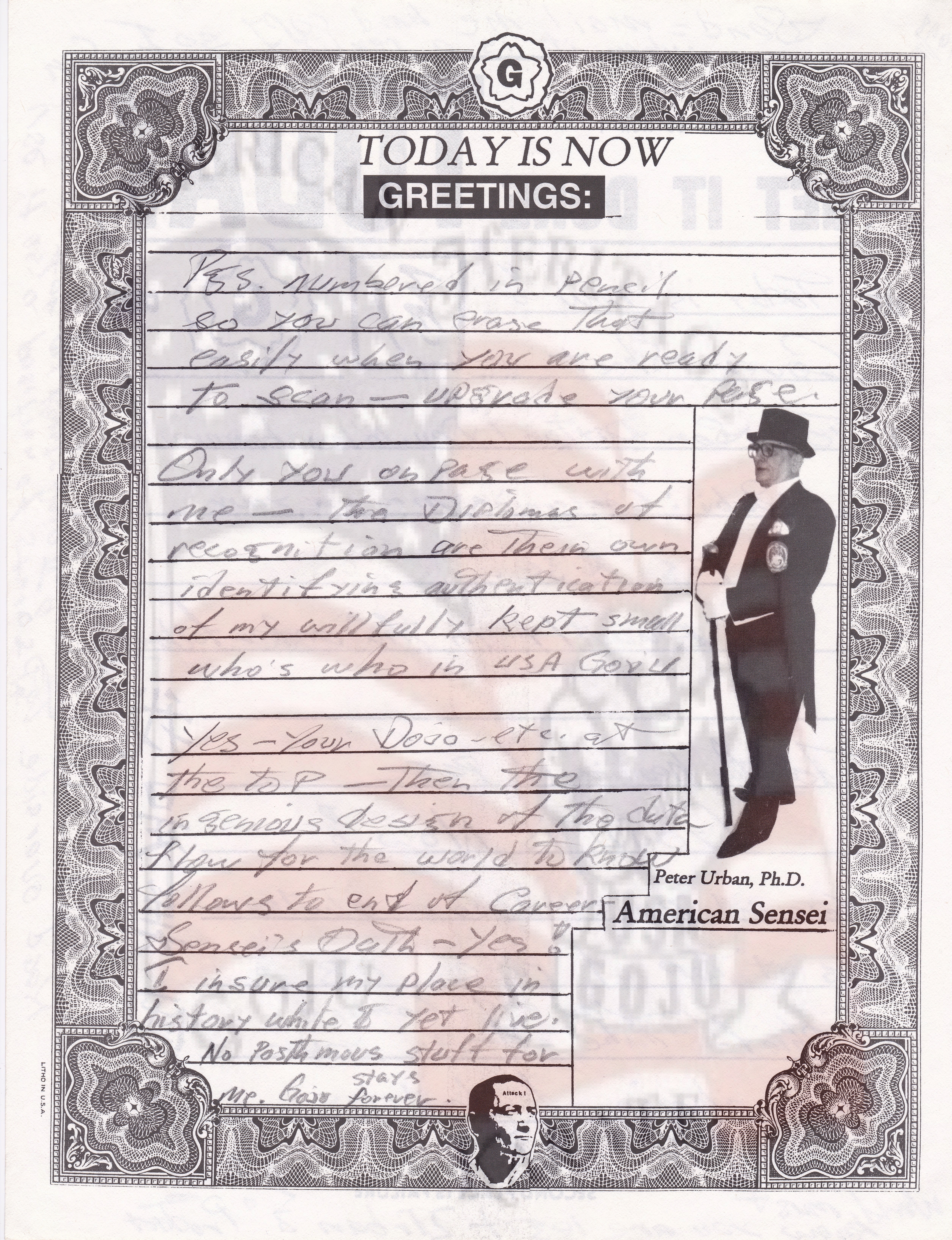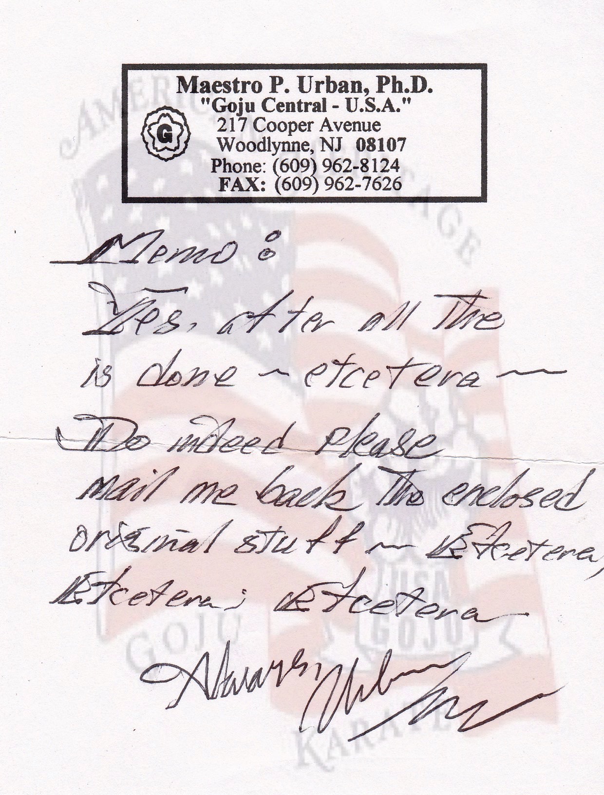 This letter is from Sensei Urban’s return from his stay in Italy. I have great letters from his stay and his work while there and hope to get them on soon.