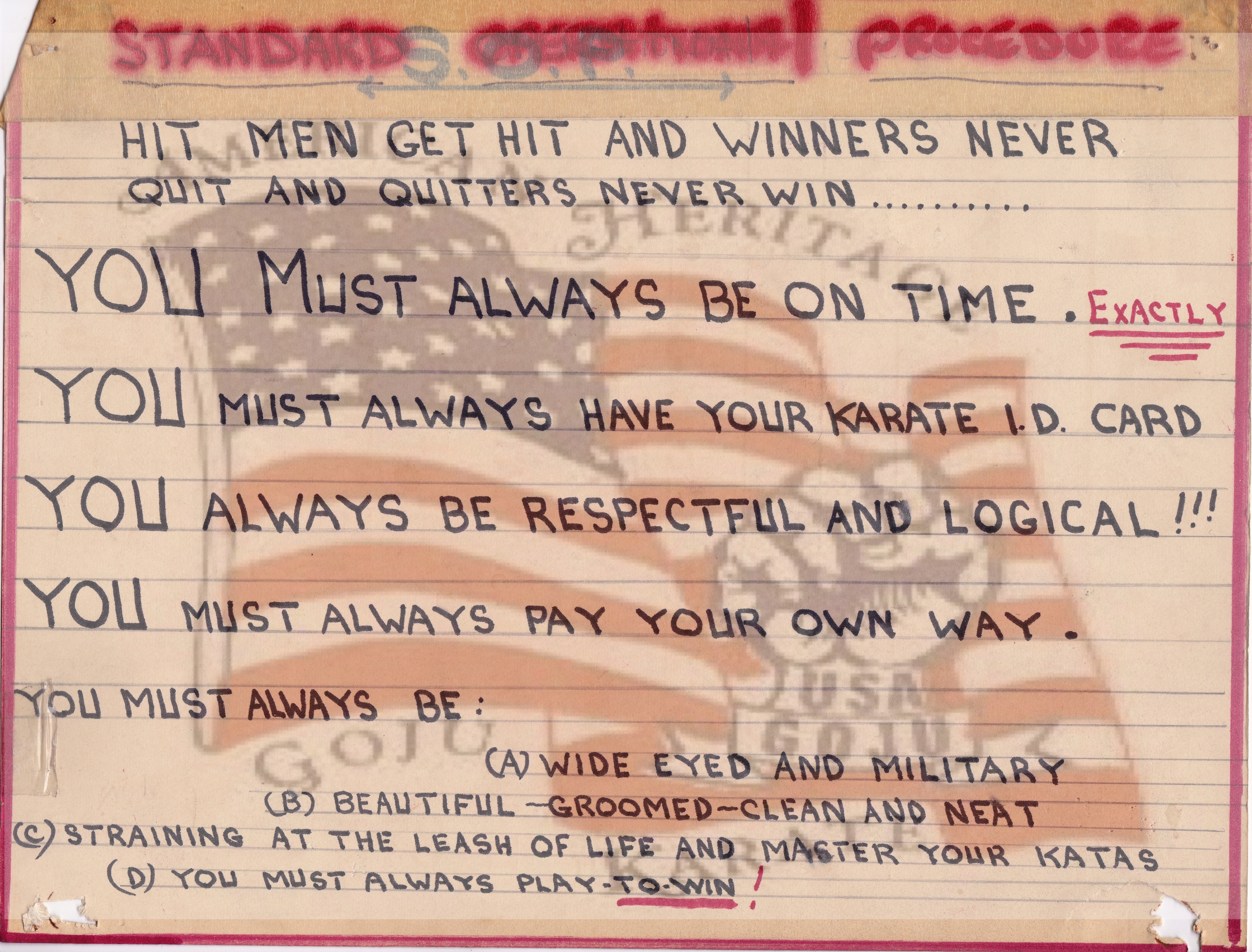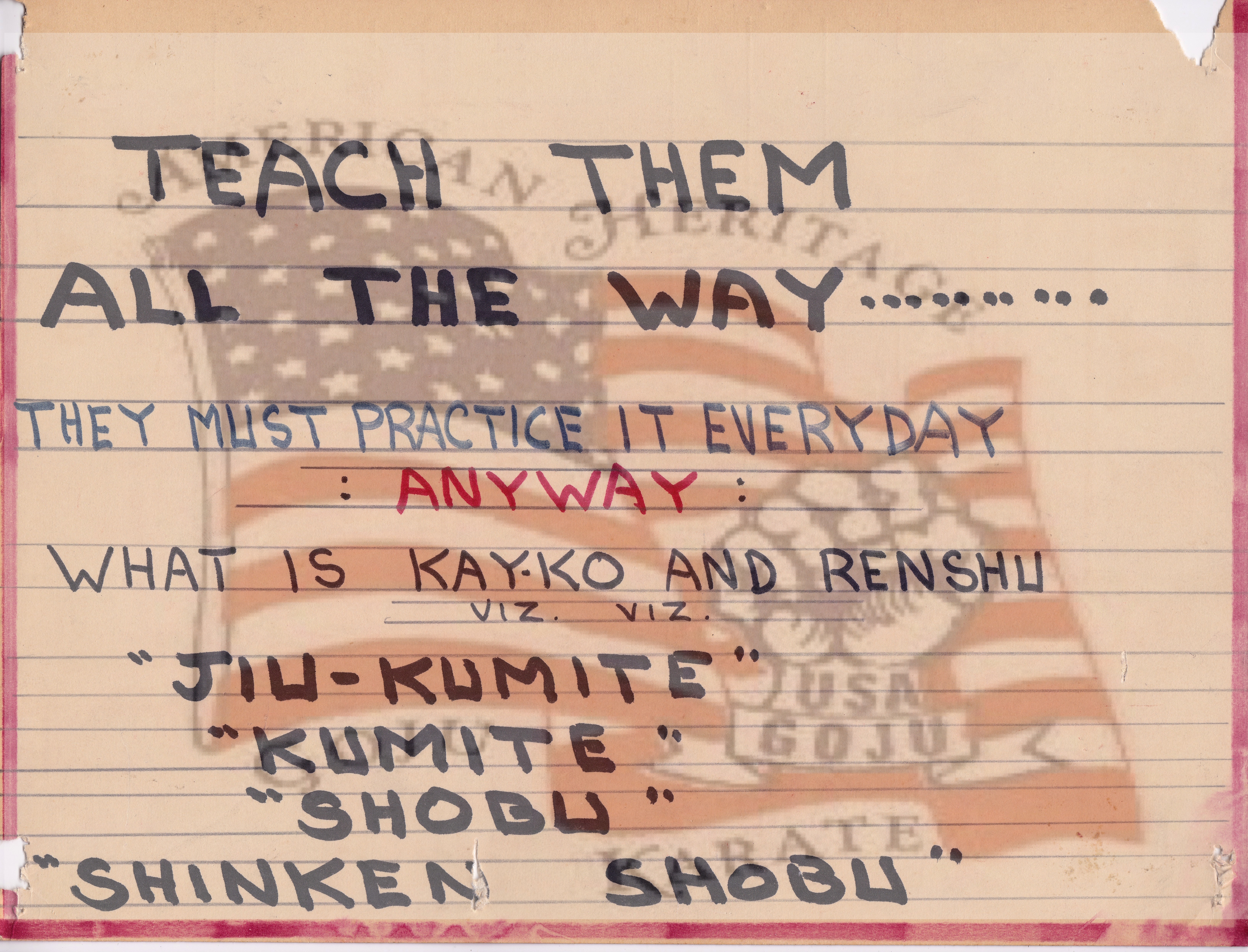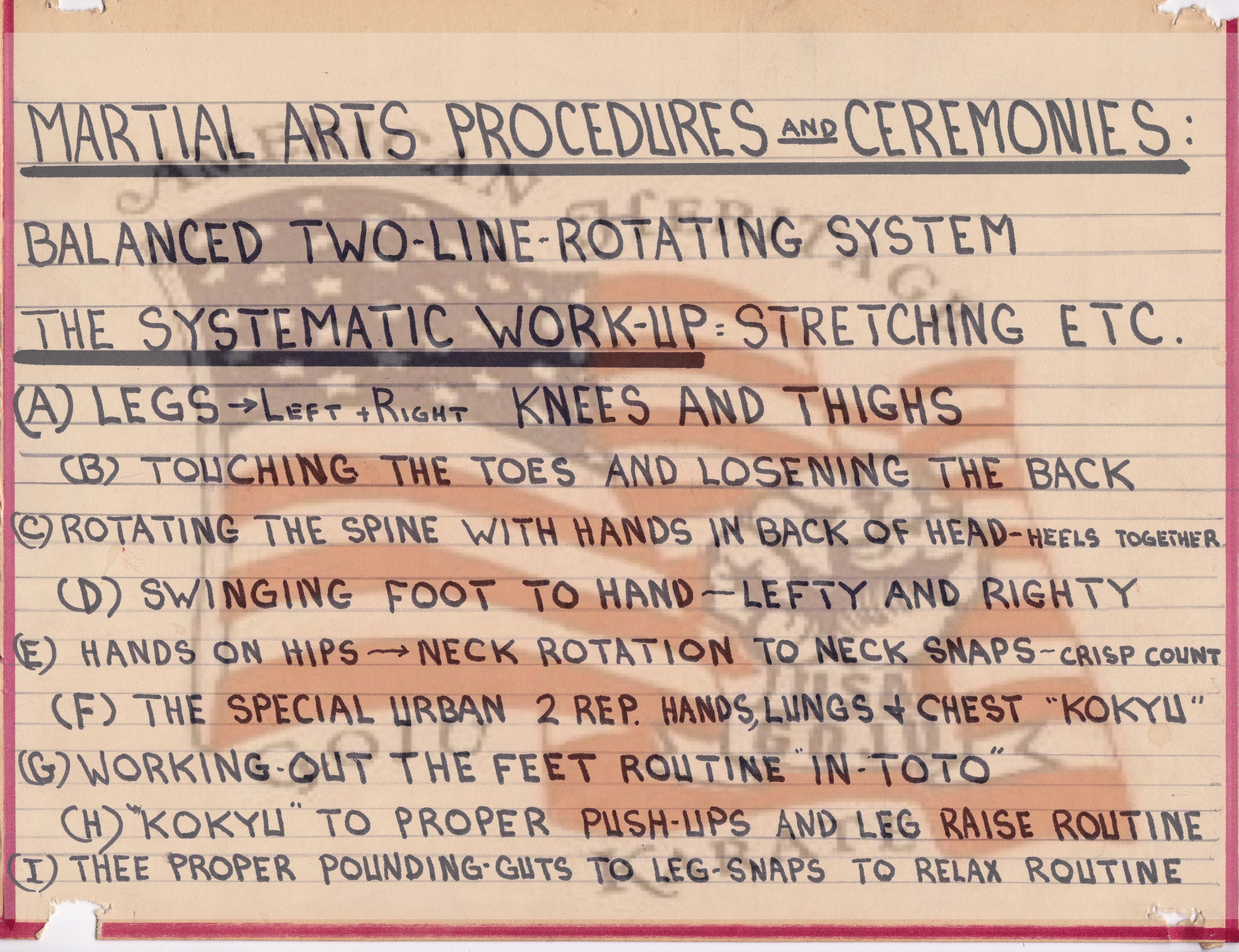 The pages above show some of the directives given me by Sensei Urban. He was always very clear with what he wanted to accomplish without modifications. This is how our working relationship worked. Everything crystal clear for all. The material on the page was to inspire and encourage all do work for a common goal of excellence.