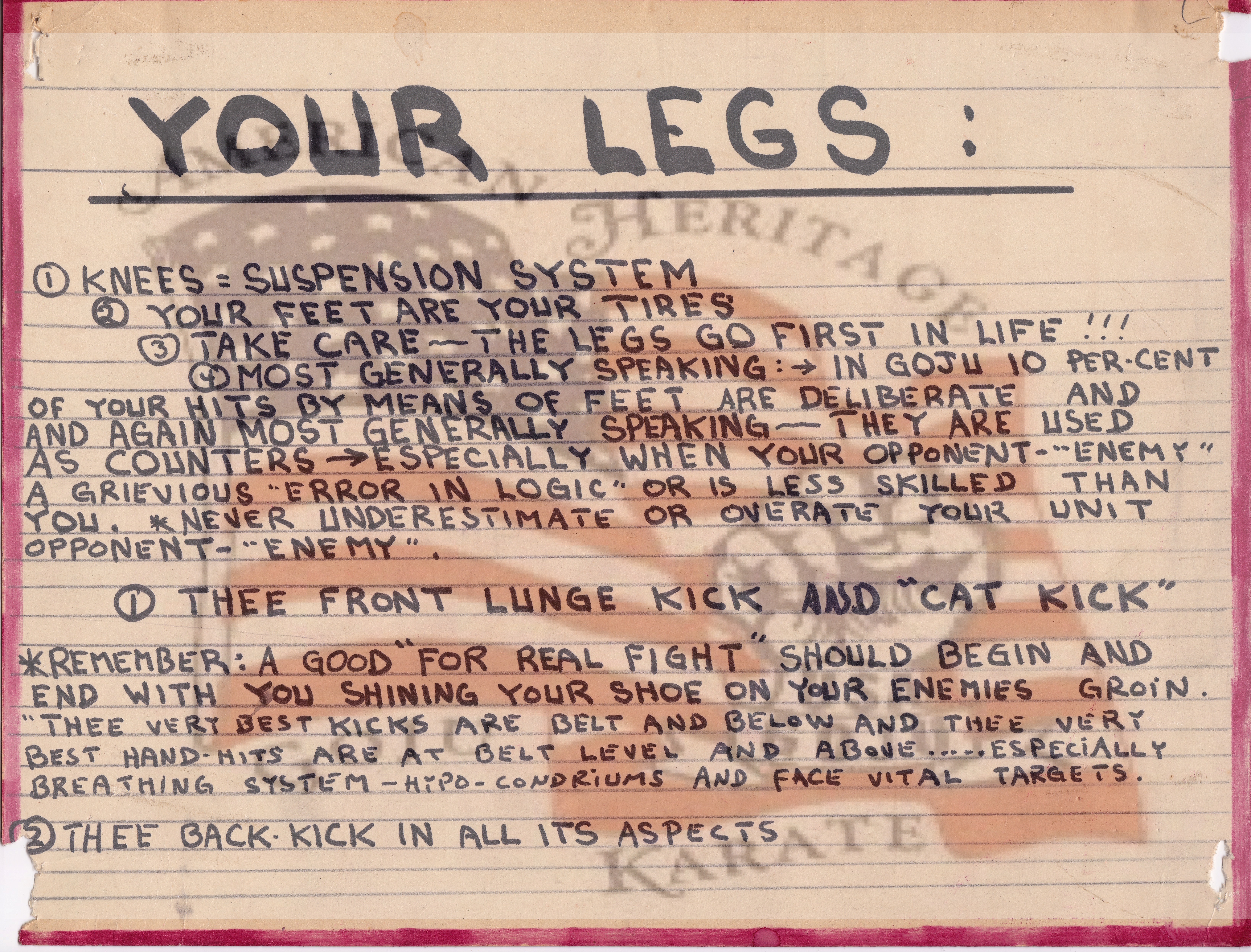 The following excerpts are from pages of Sensei Urban’s 1964 draft of the Karate Dojo.