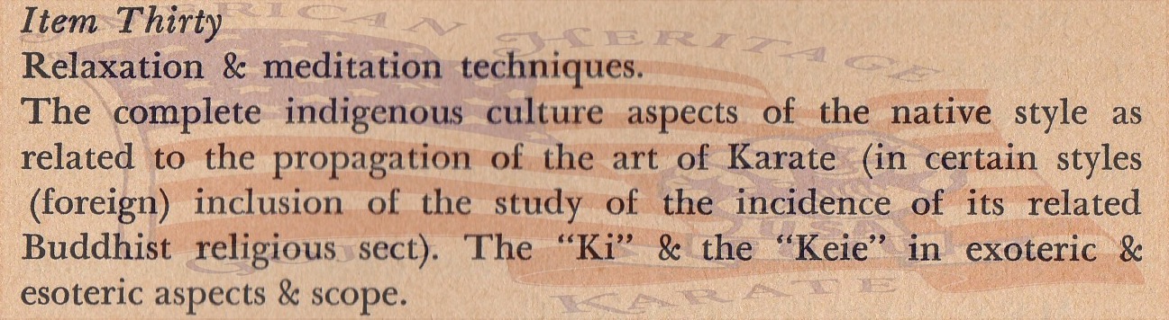 He listed “The Thirty Items Of Karate Training:”
